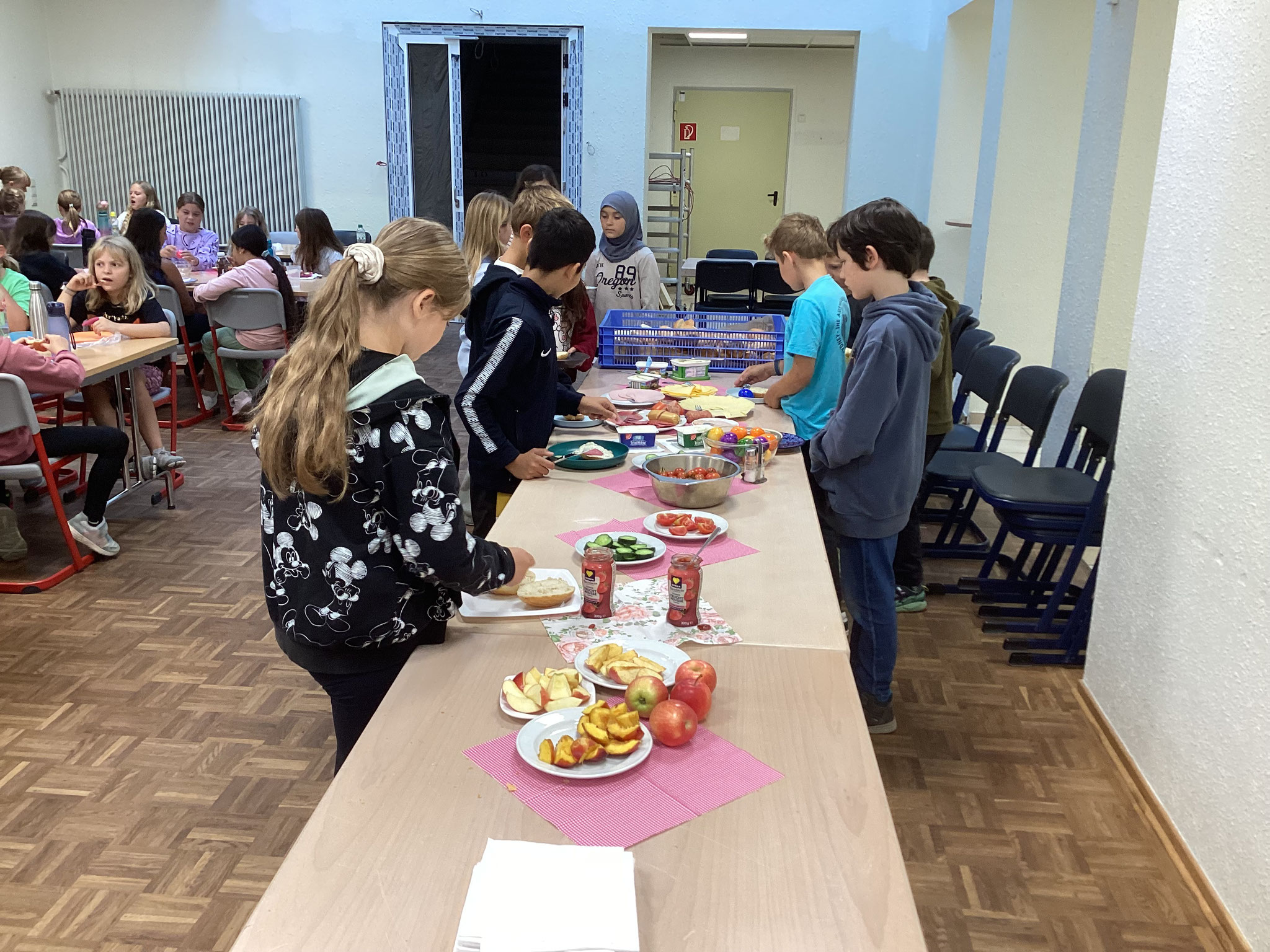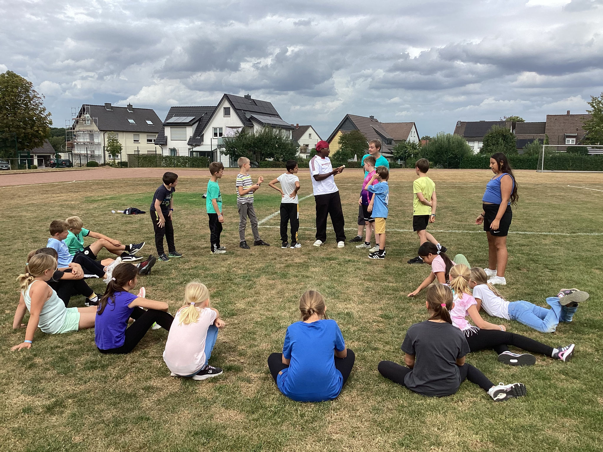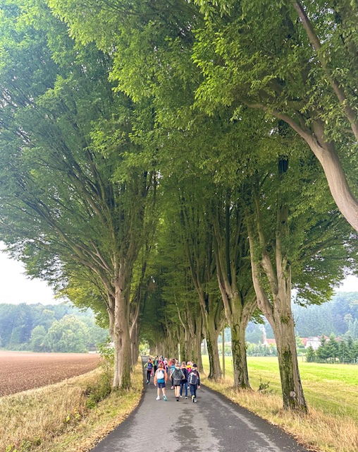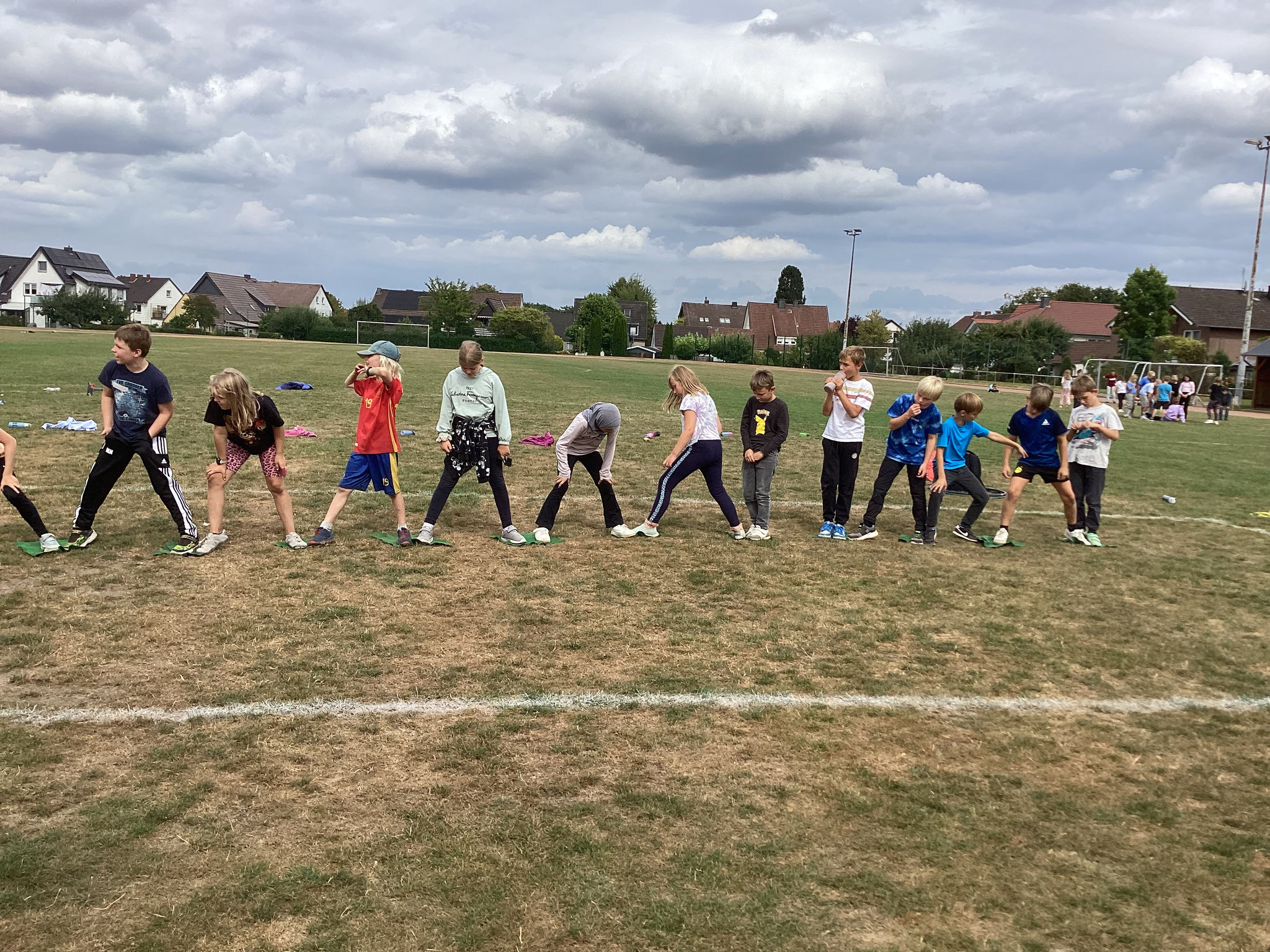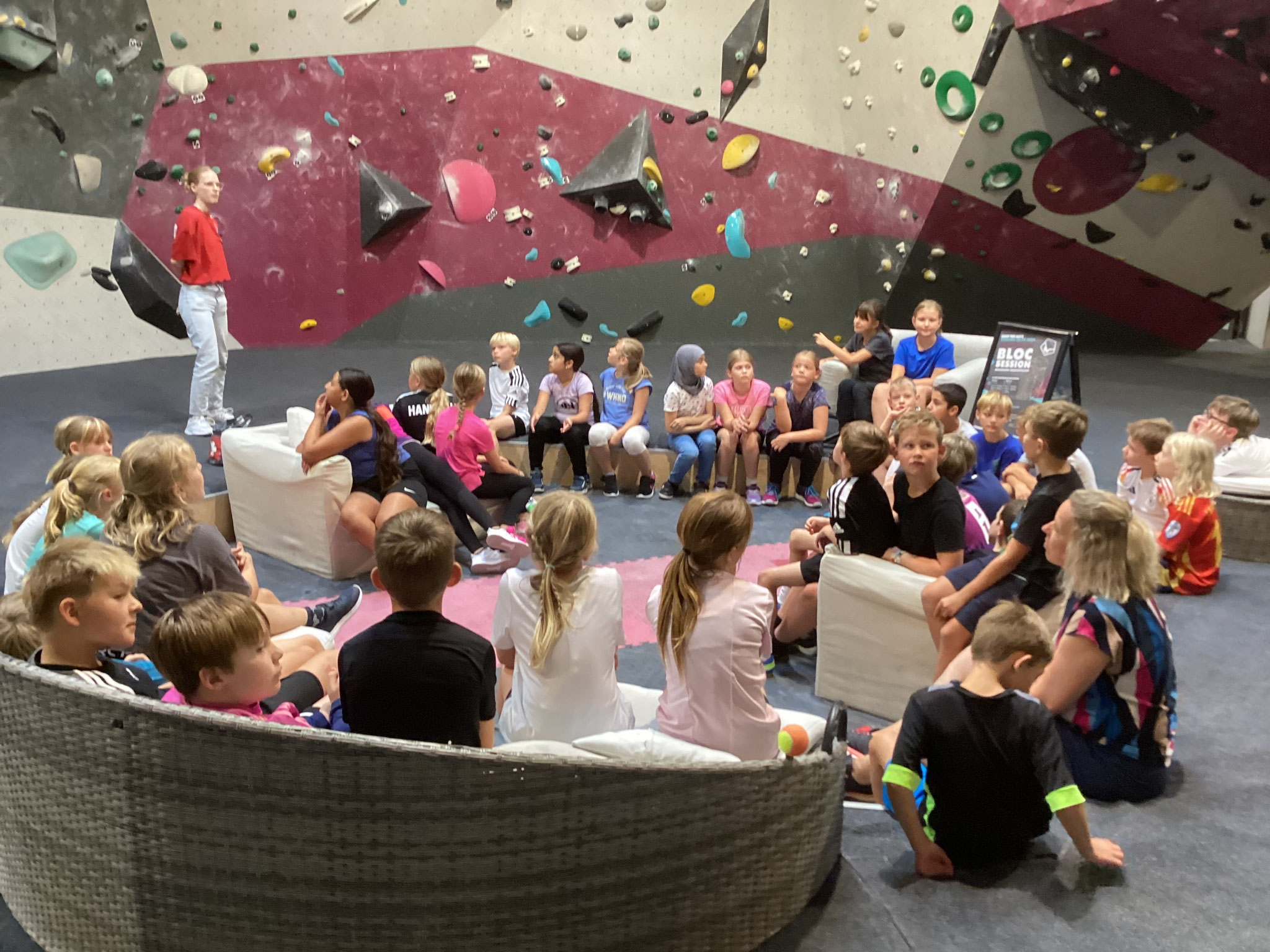 An drei aufeinanderfolgenden Tagen durften die Viertklässler viel erleben! Zunächst ging es in die Kletterhalle, in der die Kinder sich mutig ausprobierten und alleine und in der Gruppe über sich hinauswuchsen. Der zweite Tag begann mit einem gemeinsamen Frühstück im Jahrgang. Danach bekam jede Klasse Unterstützung von einem professionellen Teamer, der die Gruppe anleitete mit Sport, Spiel und Spaß, aber natürlich auch mit kniffeligen Gruppenaufgaben, bei denen Teamgeist, Geduld und Frustrationstoleranz gefragt waren. Das ein oder andere Spiel wird bestimmt im Unterrichtsalltag einen Platz finden. Jeden Tag hatten wir Glück mit dem Wetter, so konnten wir auch am dritten Tag trockenen Fußes zur Alma-Quelle wandern. Gut gelaunt wurde dort erstmal gefrühstückt und danach verteilten sich die Kinder im Wald zum Buden bauen, klettern, Sonnenuhr bauen, Wasser und Tiere untersuchen mit der Becherlupe. Damit verging die Zeit wie im Fluge und bei Sonnenschein sind wir zurück ins Dorf gelaufen. All die schönen Erinnerungen und Erfahrungen nehmen wir mit in unseren Unterrichtsalltag.
