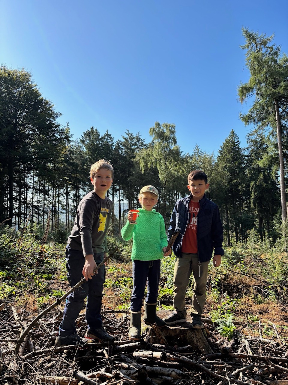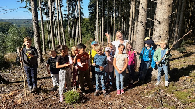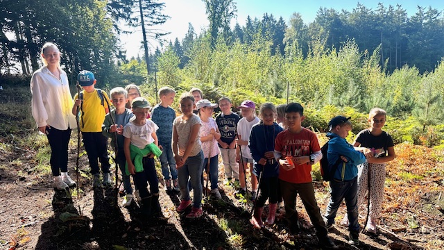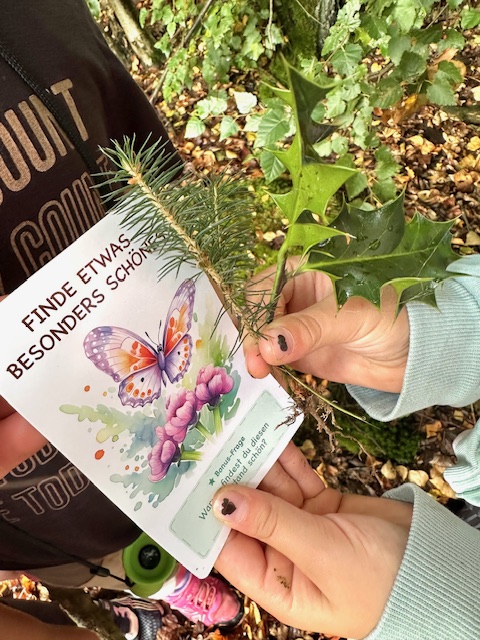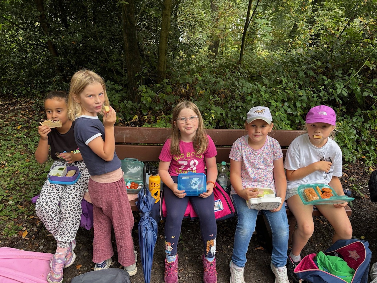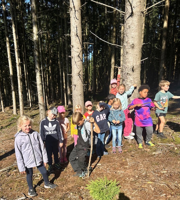 Bei wunderschönem Spätsommerwetter machte sich der 2. Jahrgang heute auf den Weg zu einem besonderen Walderlebnis. Gemeinsam mit FreundInnen und KlassenkameradInnen unterwegs zu sein, hat allen super viel Spaß gemacht. Im Wald gab es viel zu entdecken: Die Kinder sammelten Naturschätze, bastelten kreative kleine Kunstwerke aus Blättern, Steinen und Ästen und ließen ihrer Fantasie freien Lauf. Mit Begeisterung wurde gesucht und gebaut, geklettert, getobt und gespielt. Am Ende kehrten alle müde, aber glücklich zurück zur Schule - voller schöner Erinnerungen an einen fröhlichen Tag miteinander in der Natur.